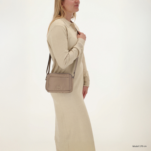 Ontdek de Beagles Duomo crossbodytas in een stijlvolle taupe kleur, die mode en veiligheid naadloos combineert dankzij zijn innovatieve security zip lock technologie. Perfect voor iedereen die stijlvol én beschermd op avontuur wil gaan!