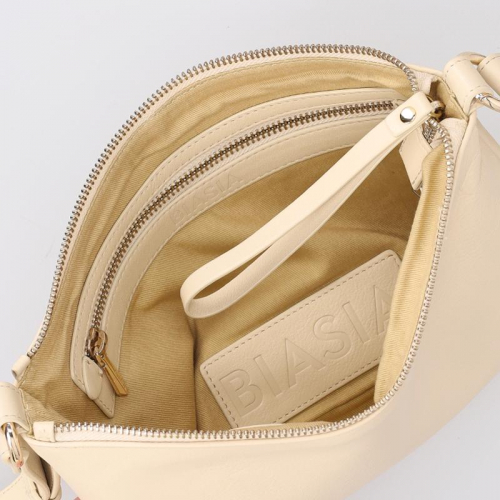 Stijl en elegantie komen samen in de Biasia Flat schoudertas/crossbodytas. Deze smalle en stijlvolle tas is uitgevoerd in prachtig beige leer, een kleur die moeiteloos je outfits complimenteert. De tas is verrijkt met goudkleurige hardware die een luxe uitstraling geeft. Biasia, een merk met roots in Italië, staat bekend om zijn toewijding aan kwaliteit en vakmanschap. Dit tijdloze design is een investering waar je jarenlang plezier van zult hebben.