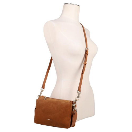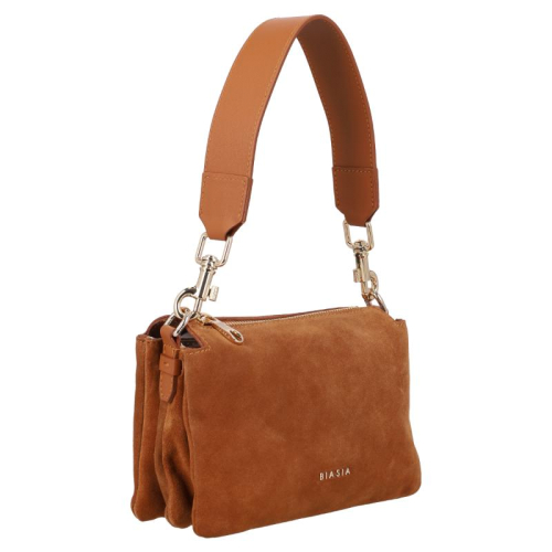 Het zachte suède geeft deze prachtige cognackleurige Biasia Feather Small schoudertas een luxe en verfijnde uitstraling. De fluweelachtige textuur zorgt voor een warme, stijlvolle look die moeiteloos past bij zowel casual als meer geklede outfits. De leren accenten zijn uitgevoerd in dezelfde kleur als het suède, wat zorgt voor een rustig en ton-sur-ton geheel met een elegante uitstraling. Subtiele goudkleurige hardware maakt het ontwerp stijlvol af. Deze chique schoudertas is een pareltje uit de collectie van Biasia, een merk dat bekendstaat om zijn tijdloze ontwerpen en hoogwaardige afwerking met oog voor detail.