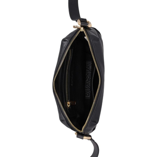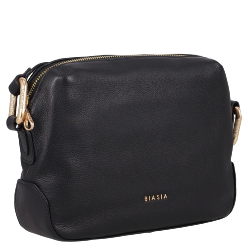 Ontdek de tijdloze elegantie van de Biasia Noveau: een verfijnde zwarte leren schoudertas, afgewerkt met goudkleurige accenten. Deze tas is de ideale metgezel voor elke gelegenheid!
