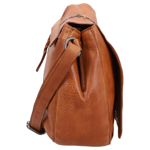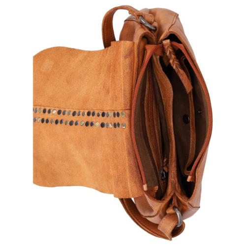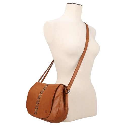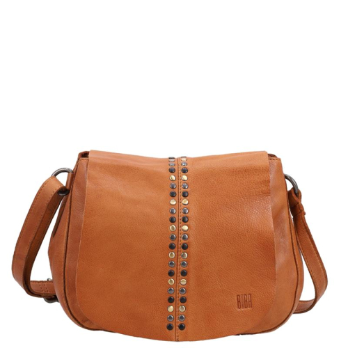 De Hancock van Biba is een uitgesproken tas met karakter. Uitgevoerd in cognac leer en afgewerkt me een mix van goud-, zilver- en zwartkleurige hardware, is deze tas allesbehalve standaard. De studs op de klep, in de verschillende tinten, geven het ontwerp een edgy en speelse uitstraling.