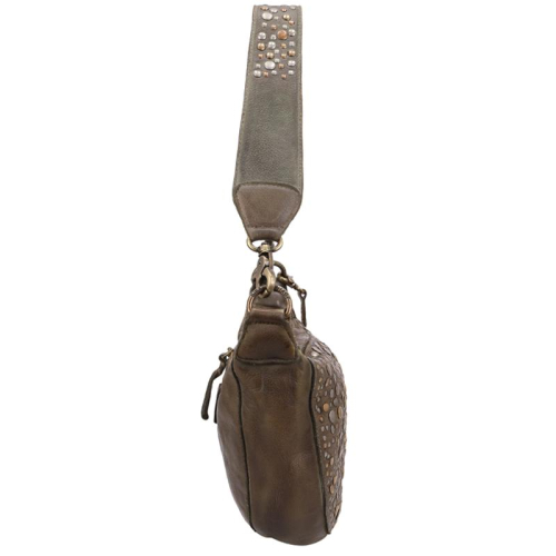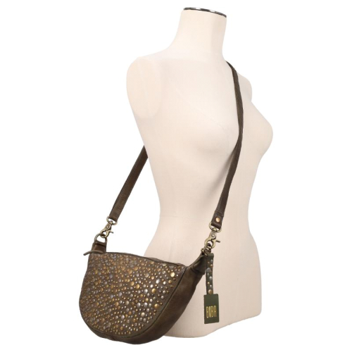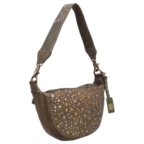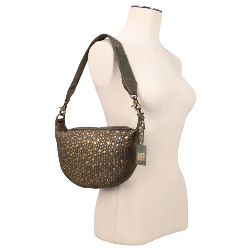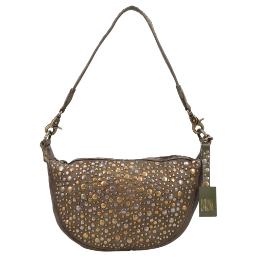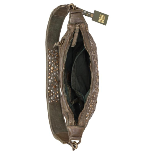 De Lovington Stars van Biba is een speelse en stijlvolle tas die opvalt door haar unieke details. Uitgevoerd in groen leer en afgewerkt met een mix van goud- en zilverkleurige hardware, straalt deze tas karakter uit. De goudkleurige rits en accenten zorgen voor een warme, luxe uitstraling, terwijl de zilverkleurige studs een edgy contrast toevoegen.