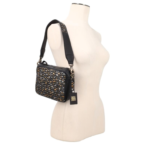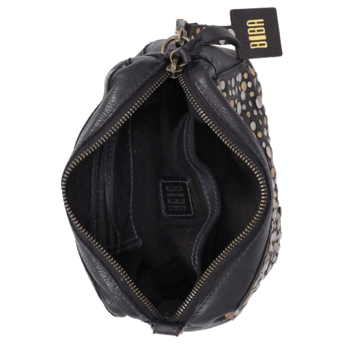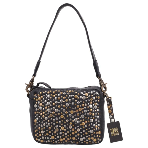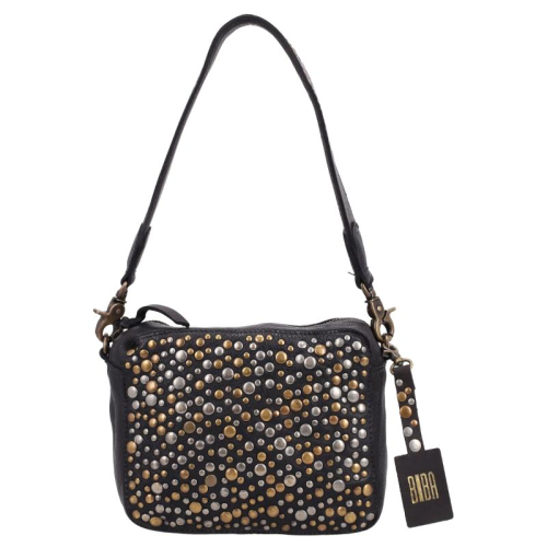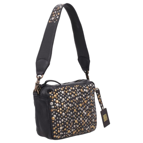 De Lovington Stars van Biba is een speelse en stijlvolle tas die opvalt door haar unieke details. Uitgevoerd in zwart leer en afgewerkt met een mix van goud- en zilverkleurige hardware, straalt deze tas karakter uit. De goudkleurige rits en accenten zorgen voor een warme, luxe uitstraling, terwijl de zilverkleurige studs een edgy contrast toevoegen.