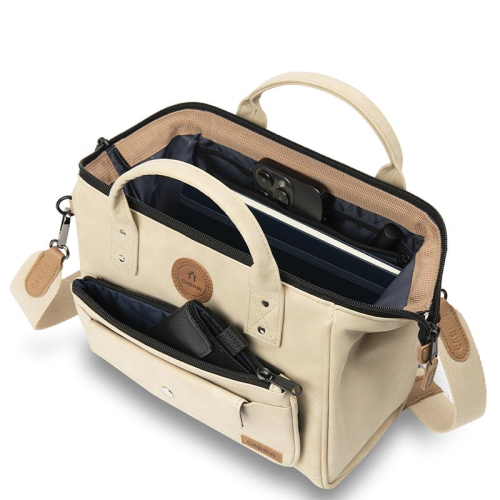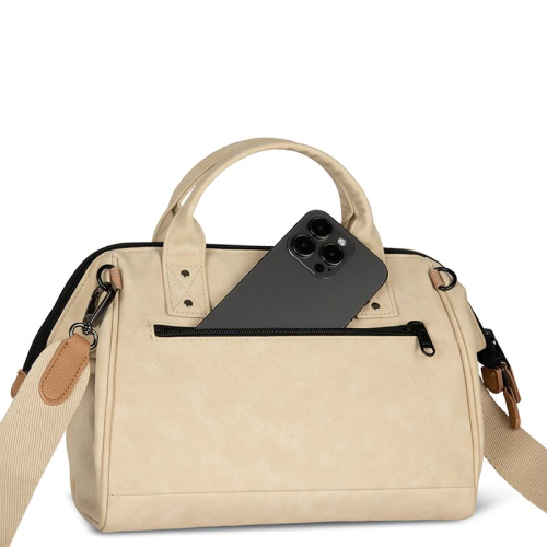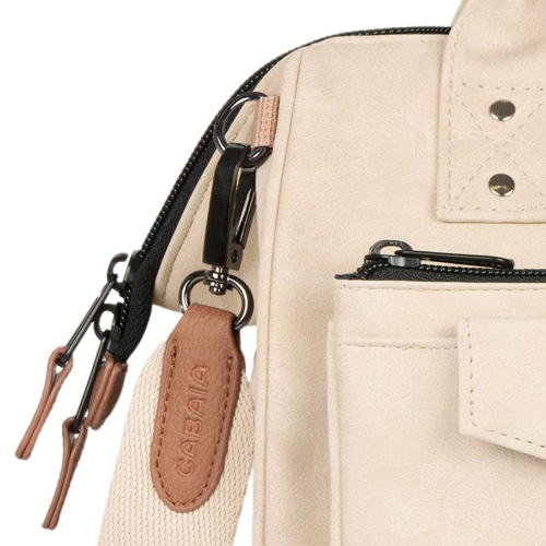 Deze crossbodytas van Cabaia is een echte blikvanger. De tas is uitgevoerd in een elegante beigekleur, die perfect past bij elke outfit. Het zachte kunststof voelt fijn aan en straalt kwaliteit uit. De tas is voorzien van een mix van zwarte en zilverkleurige hardware, wat zorgt voor een moderne look. De bruine accenten aan de voorzijde en ritsen geven een warme touch. Met de verwisselbare etui op de voorkant kan je de tas helemaal naar je eigen smaak aanpassen. Cabaia, een merk dat bekend staat om zijn innovatieve en stijlvolle ontwerpen, heeft hier weer een prachtig item afgeleverd.
