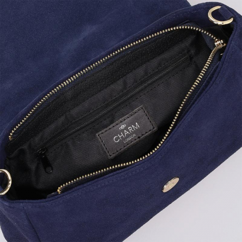Charm London heeft zichzelf weer overtroffen met deze prachtige tas. De tas in de elegante kleur blauw straalt puur klasse uit en is perfect voor elke gelegenheid. De subtiele goudkleurige hardware voegt net dat beetje extra luxe toe dat je zoekt in een accessoire. De tas heeft een unieke klep met een strook leer die doorloopt tot aan de onderkant van de tas, wat een speelse en toch verfijnde uitstraling geeft.