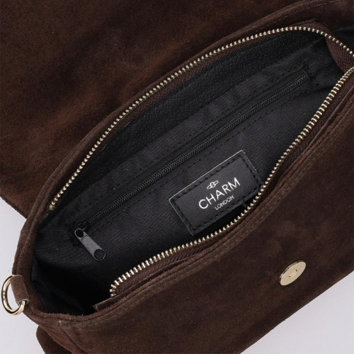 Charm London heeft zichzelf weer overtroffen met deze prachtige tas. De tas in de elegante kleur bruin straalt puur klasse uit en is perfect voor elke gelegenheid. De subtiele goudkleurige hardware voegt net dat beetje extra luxe toe dat je zoekt in een accessoire. De tas heeft een unieke klep met een strook leer die doorloopt tot aan de onderkant van de tas, wat een speelse en toch verfijnde uitstraling geeft.