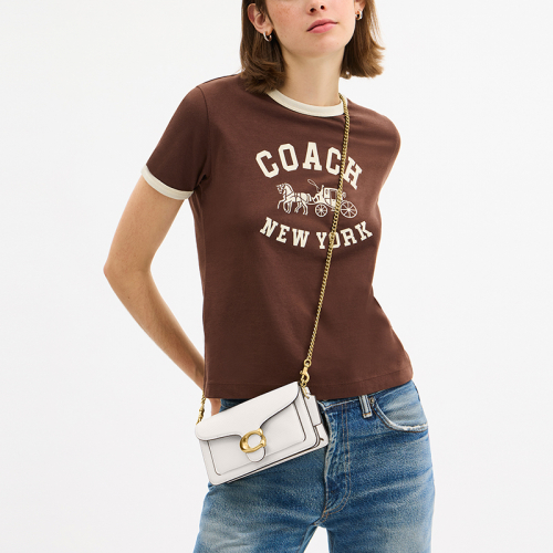 Minimalistisch, stijlvol en bovendien een klassiek Coach design, dat is de Tabby 19 crossbodytas. Deze tijdloze tas is vervaardigd uit beigekleurig leer en afgewerkt met prachtige goudkleurige hardware. Dankzij het minimalistische ontwerp combineer je hem moeiteloos met al je favoriete outfits, of je nu een dagje de stad in gaat of ’s avonds uit. Voorop de tas staat trots het iconische C-logo van Coach wat de tas direct herkenbaar maakt als een van de hoogwaardige ontwerpen van het merk.