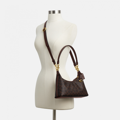 De Coach Juliet is een stijlvolle en compacte handtas met een handige ritssluiting naar het hoofdcompartiment. Binnenin vind je een goed georganiseerd steekvak, ideaal voor kleinere items die je snel wilt terugvinden. Praktisch en mooi, precies wat je zoekt in een tas!