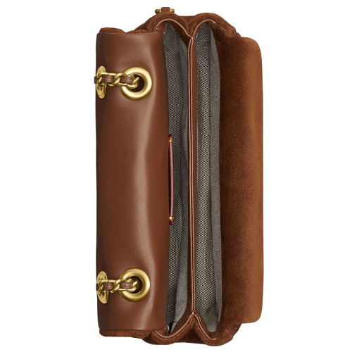 Praktisch hoeft niet saai te zijn, en dat bewijst deze tas maar weer. Met twee hoofdcompartimenten biedt de Coach Quilted Tabby 20 genoeg ruimte voor al je essentials. Daarnaast heeft de tas ook een handig steekvak, veilig verborgen onder de sluitklep, dat wordt vastgezet met een magneetsluiting. De sluitklep zelf zorgt ervoor dat alles netjes op zijn plek blijft met een stevige klikluiting.
