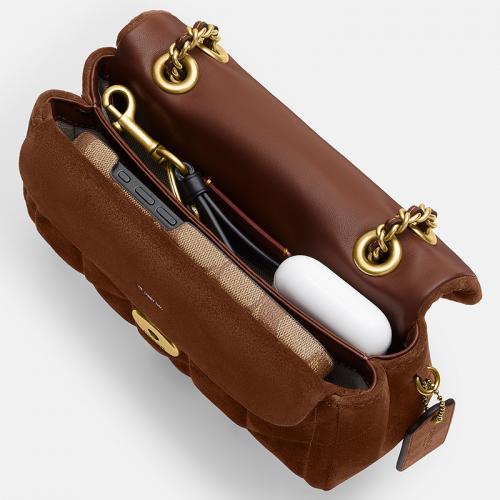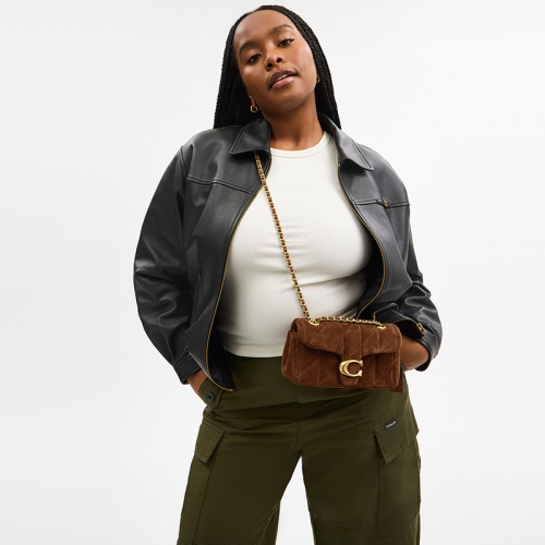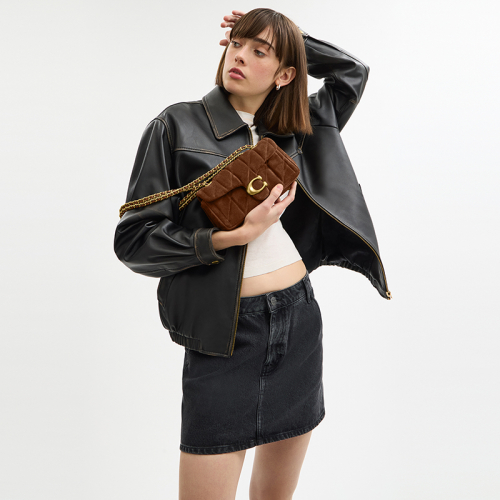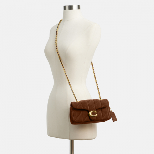 De Coach Quilted Tabby 20 in bruin suède is een stijlvolle en compacte designer tas die perfect past bij elke gelegenheid. Met zijn luxueuze gewatteerd design en iconische C-logo straalt deze tas pure elegantie uit. Het ideale accessoire voor een verfijnde en moderne look!