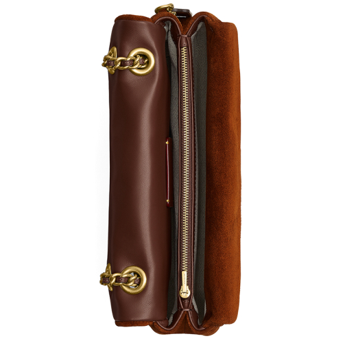 De tas kan gedragen worden aan de goudkleurige schakelketting, die verstelbaar is. Zo kun je de Coach Quilted Tabby 26 zowel als schoudertas gebruiken of stijlvol crossbody dragen.