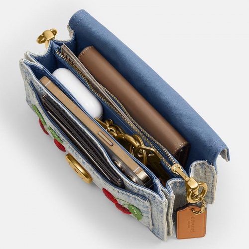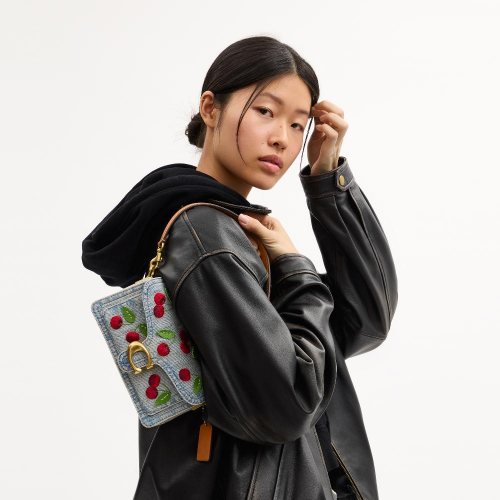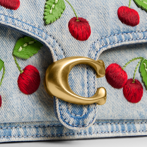 De Coach Tabby Cherry 20 Denim is de perfecte mix van speels en chic, met zijn denim buitenkant en vrolijke geborduurde kersjes. Deze veelzijdige tas voegt een vleugje New Yorkse flair toe aan elke outfit!
