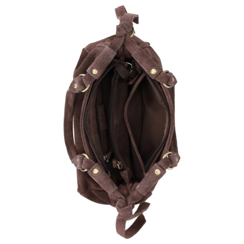 De DSTRCT Portland Road schoudertas is vervaardigd uit prachtig bruin suède van hoge kwaliteit. De goudkleurige hardware geeft het design een luxe uitstraling, met als blikvangers de bolle metalen studs die de tas een stoer karakter geven. Aan de zijkanten zorgen speels geknoopte leren strips voor een eigentijdse en vrouwelijke touch.