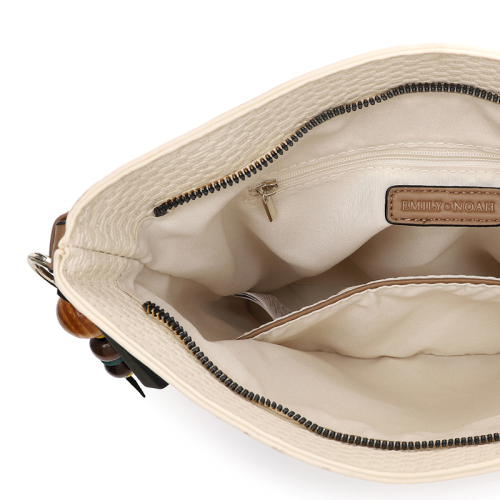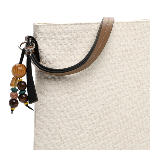 De Emily & Noah Johanna handtas is een must-have die je kledingkast niet mag missen. Met een prachtig embossed rieten geweven dessin en warme goudkleurige hardware is deze tas een echte blikvanger. De Johanna komt uit de exclusieve collectie van Emily & Noah, een merk dat bekend staat om zijn stijlvolle en kwalitatieve ontwerpen. De tas wordt nog verfijnder door de contrasterende bruine schouderband die elegant van de linkerkant naar de rechterkant loopt. En als kers op de taart voegt de kleurrijke bag charm met kralen een heerlijke boho touch toe aan jouw look.