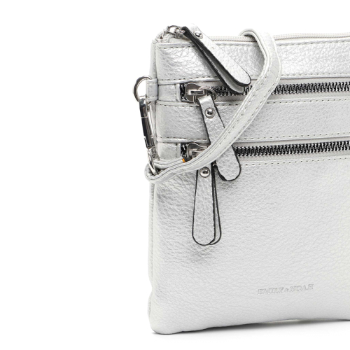 Op zoek naar een compacte tas die zowel praktisch als opvallend is? De Emma crossbodytas van Emily & Noah tilt met zijn stralende zilverkleurige leerlook en elegante zilverkleurige details elke outfit moeiteloos naar een hoger niveau.