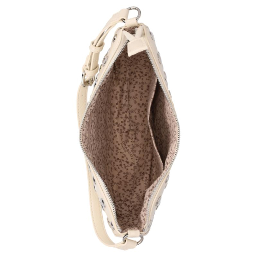 Deze crossbodytas van Flora & Co is een echte blikvanger. Met zijn beige, D-vormige ontwerp en unieke crackle-textuur, straalt hij zowel elegantie als subtiliteit uit. De platte zilverkleurige studs voegen een stoer tintje toe, waardoor je tas net dat beetje extra flair krijgt. Flora & Co, afkomstig uit de modehoofdstad Parijs, staat bekend om zijn tijdloze ontwerpen en kwaliteit. Deze tas behoort tot een collectie die de perfecte balans vindt tussen klassieke stijl en moderne trends.