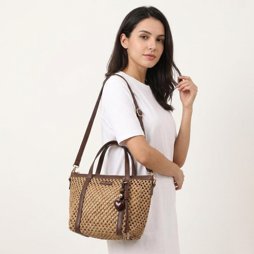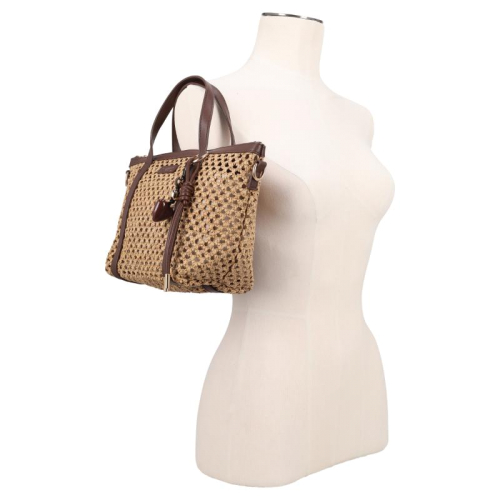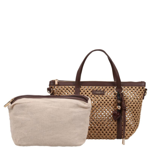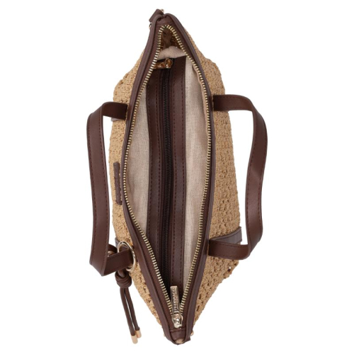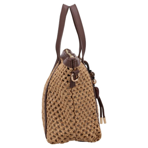 Ontmoet de Flora & Co Pippa, een stijlvolle beige handtas die elegantie en Franse flair samenbrengt dankzij haar unieke gevlochten patroon en chocoladebruine accenten. Deze tas is een absolute must-have voor fashion