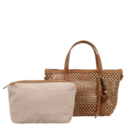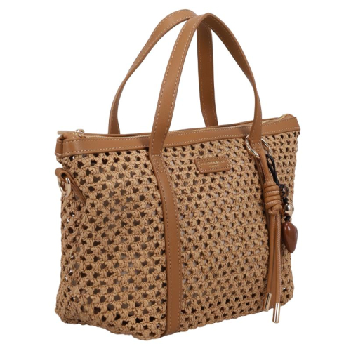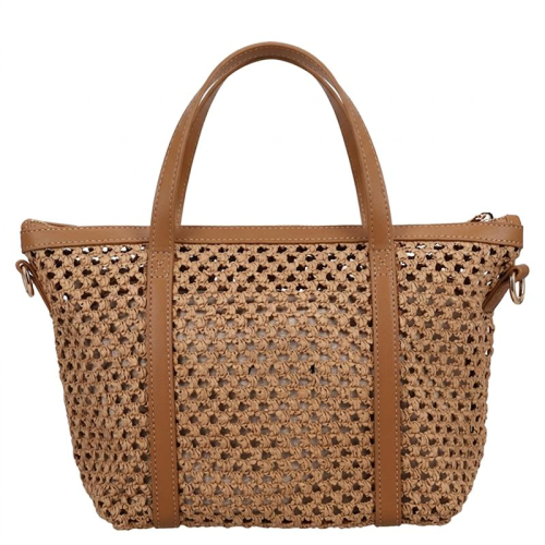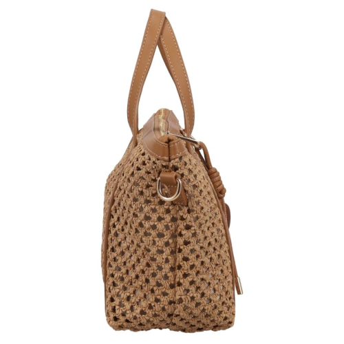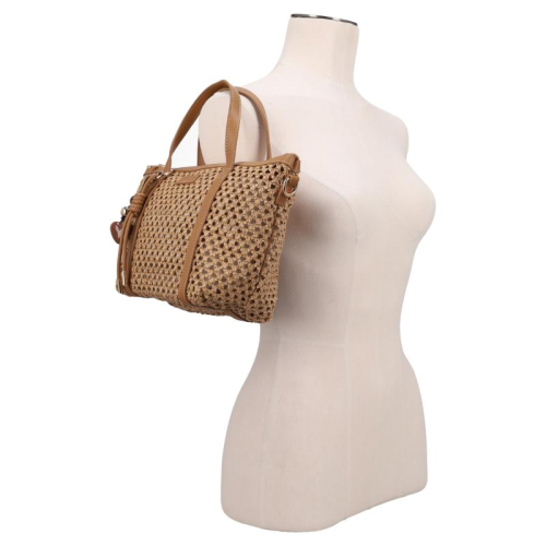 Ontmoet de Flora & Co Pippa, een stijlvolle beige handtas die elegantie en Franse flair samenbrengt dankzij haar unieke gevlochten patroon en chocoladebruine accenten. Deze tas is een absolute must-have voor fashion