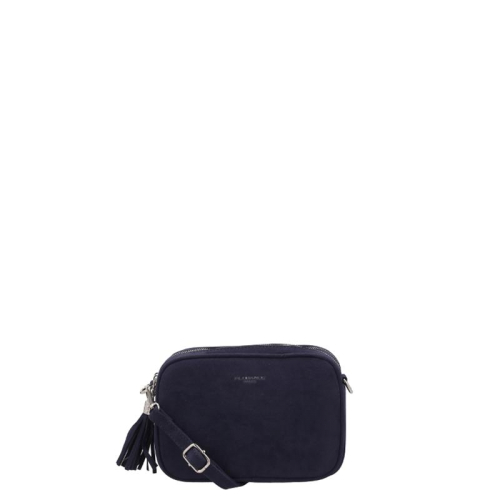 De Kyra crossbodytas heeft een elegante blauw suede-look en is aan de binnenkant gevoerd met een vrolijk bloemetjespatroon, die het geheel een vrouwelijke en tijdloze charme geeft. De zilverkleurige hardware, samen met een speelse tassel aan de rits, maken deze elegante tas helemaal af.