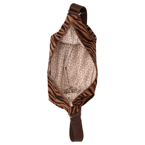 De Flora & Co Hailey is een opvallende crossbodytas met een trendy tijgerprint en een zachte suède look. De goudkleurige hardware voegt een vleugje luxe toe, terwijl het speelse design perfect past bij een gedurfde en elegante stijl.