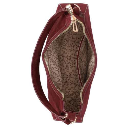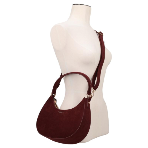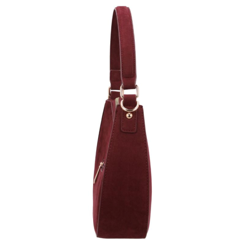 De Flora & Co Olivia is een maanvormige crossbodytas uitgevoerd rood velvet. De goudkleurige hardware geeft de tas een luxe, elegante uitstraling. Perfect voor zowel dagelijks gebruik als avondjes uit.