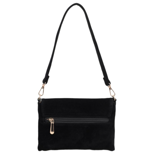Aan de achterzijde vind je een handig ritsvak. Het hoofdcompartiment opent in twee stappen: eerst de klep met magnetische drukknoop, daarna de ritssluiting. Binnenin bevinden zich een ritsvak en een steekvak, ideaal voor het georganiseerd opbergen van je essentials.