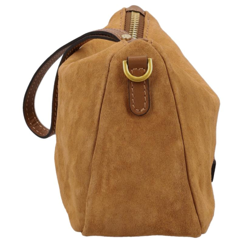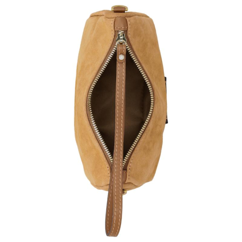Ontdek de elegantie en stijl van dit prachtige Gianni Chiarini crossbodytasje uit de collectie Nora Pouch. Dit kleine, bruin suède tasje is de perfecte metgezel voor wie het liefst alleen de allerbelangrijkste spullen meeneemt. Met een stijlvol polsbandje als ritstrekker is dit tasje zowel praktisch als modieus.