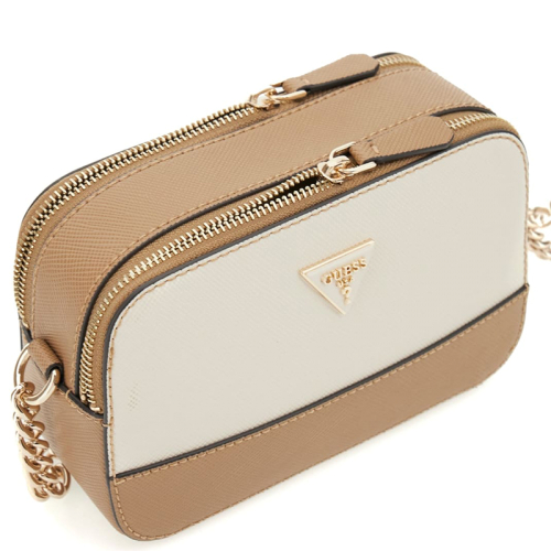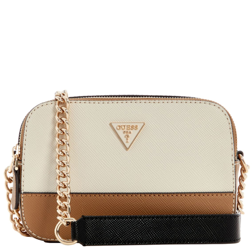 Deze schoudertas uit de Noelle ll collectie van Guess is een absolute must-have voor iedere modeliefhebber. De elegante combinatie van zwart, crème en beige wordt prachtig aangevuld door verfijnde goudkleurige details, die de tas een luxueuze uitstraling geven. Het iconische merklogo in een speelse driehoek prijkt trots op de voorkant en maakt dit stijlvolle design helemaal compleet.