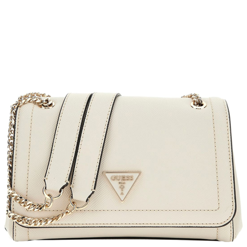 De Guess crossbodytas uit de Noelle ll collectie is een ware eyecatcher! Met zijn effen kleur beige is deze tas tijdloos en makkelijk te combineren met elke outfit. Het minimalistische model straalt elegantie uit en wordt geaccentueerd door de prachtige goudkleurige hardware. Daarnaast is het iconische Guess logo aan de voorkant van de tas een ware blikvanger.