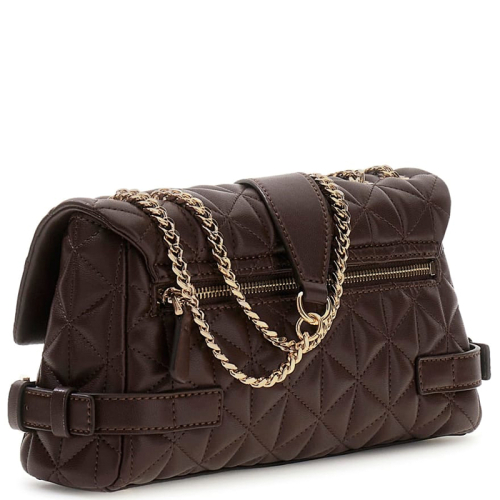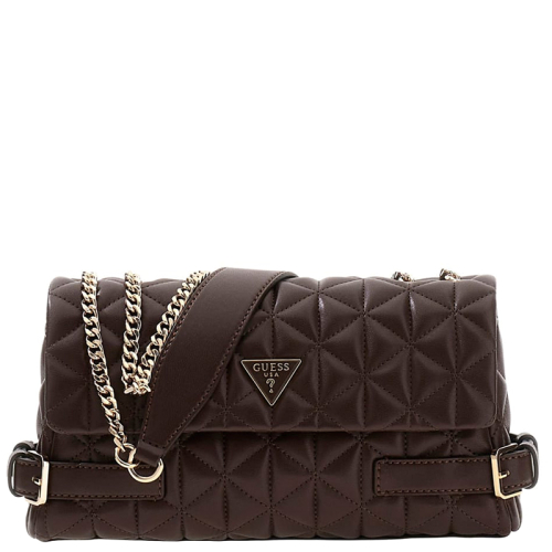 De Guess Paisleigh is een waar kunstwerk in de wereld van tassen. Gemaakt van bruin kunststof, heeft deze tas een opvallend gewatteerd gestikt ruitpatroon dat meteen in het oog springt. De decoratieve gespen aan de zijkanten voegen een speels maar elegant detail toe. Het goudkleurige hardware en de elegante chain schouderband geven de tas een luxueuze uitstraling, perfect voor elke gelegenheid. Guess, een iconisch merk met roots in Amerika, staat bekend om zijn trendy ontwerpen en hoogwaardige kwaliteit, en deze tas is daarop geen uitzondering.