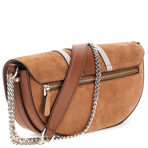 Laat je betoveren door de verfijnde stijl van de Guess Erenia crossbodytas. In een warme cognac suède kleur straalt deze tas pure elegantie uit. Het iconische logo van Guess siert subtiel de voorkant van de flap, omringd door luxueuze goudkleurige hardware die elke outfit een glamoureuze touch geeft. Guess, een merk dat zijn roots in de Verenigde Staten heeft, staat al jaren synoniem voor stijl en kwaliteit. Met deze tas maak je een statement dat zowel tijdloos als trendy is.