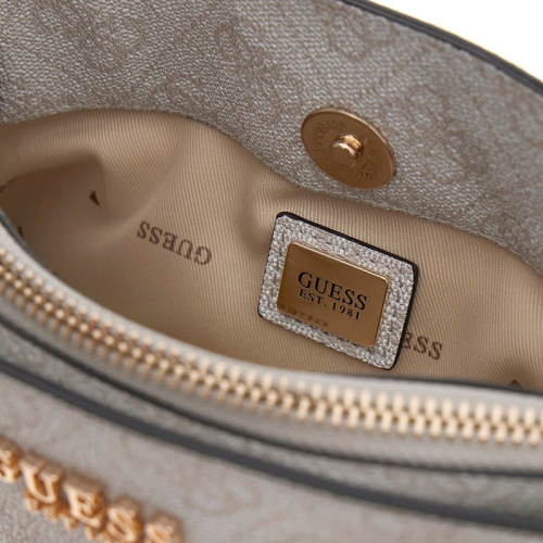 De Guess Leona Logo schoudertas in een elegante witte kleur is het perfecte accessoire voor de modebewuste vrouw; deze tas combineert stijl met functionaliteit dankzij zijn klassieke vorm en iconische logoprint. Een must-have voor elke outfit!
