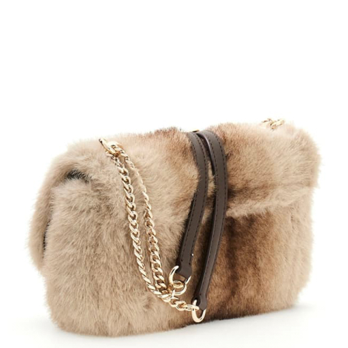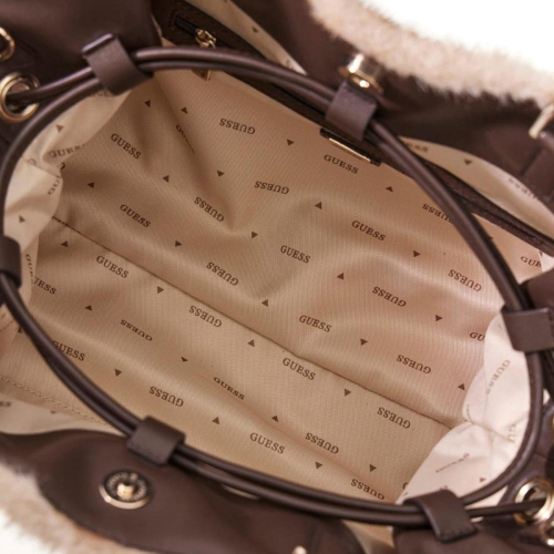 De Guess Mavis schoudertas is een stijlvolle tas in een elegante beige en bruine tint kunstvacht, afgewerkt met goudkleurige details. Met haar afgeronde design en compacte formaat is deze tas een perfecte mix van glamour en functionaliteit. Ideaal om je favoriete essentials georganiseerd én chic mee te nemen!