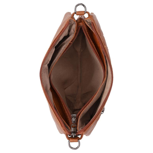 Aan zowel de voor- als achterzijde bevindt zich een ritsvak voor snelle toegang tot kleine essentials. Het hoofdcompartiment sluit met een ritssluiting en is slim ingedeeld met twee ritsvakken, een steekvak en een open compartiment.