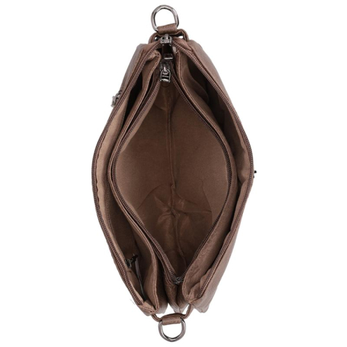 Aan zowel de voor- als achterzijde bevindt zich een ritsvak voor snelle toegang tot kleine essentials. Het hoofdcompartiment sluit met een ritssluiting en is slim ingedeeld met twee ritsvakken, een steekvak en een open compartiment.