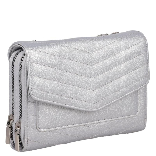 Ontdek de Hernan crossbodytas in een verfijnde zilverkleur, een prachtig model dat stijl en functionaliteit naadloos combineert! Met zijn chique V-vorm en zilverkleurige accenten trekt deze tas gegarandeerd alle aandacht.