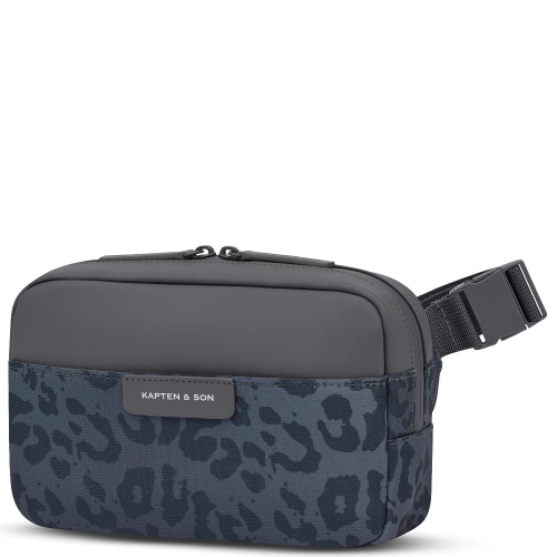 Dit gerecyclede PET heuptasje met grijskleurige panterprint uit de Bergen Pro Crossbody-collectie van Kapten & Son is een absolute must-have. Met zijn handige voorvak en magnetische sluiting kun je snel en gemakkelijk spullen opbergen. De brede nylon riem, die tevens dient als schouderband, opent met een eenvoudige kliksluiting, waardoor dit tasje perfect is voor onderweg.