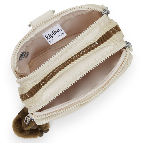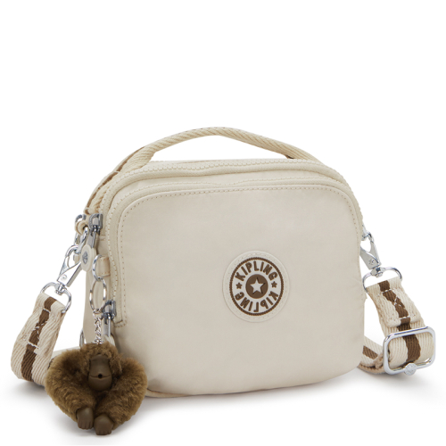 Veelzijderiger dan de Kipling Cahir in de kleur beige wordt het niet! Deze tas is als handtas, schoudertas, crossbodytas en rugtas te dragen.