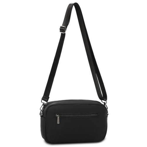 Aan de voorkant zitten dire handige lusjes waar je met een karabijnhaak bijvoorbeeld je sleutels aan kunt bevestigen. Daarnaast vind je aan de voorzijde een steekvak met drukknoopsluiting. Zowel de voor- als achterkant van de tas heeft een ritsvak voor items die je snel wilt pakken. Het hoofdcompartiment sluit met een ritssluiting en is binnenin voorzien van een steekvak en een ritsvak, zodat je je essentials overzichtelijk kunt opbergen.