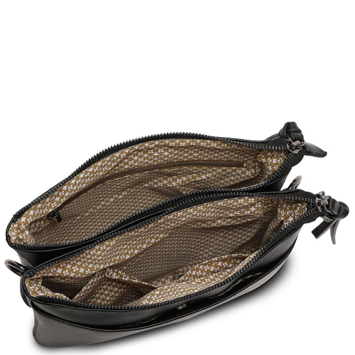 De Puccini Melissa is een elegante zwarte tas die strak design combineert met slimme functionaliteit. Een veelzijdige keuze voor wie houdt van stijl.
