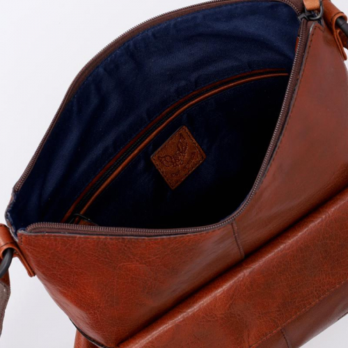 Deze tas is niet alleen een pareltje om te zien, maar ook praktisch in gebruik. Het beschikt over één ruim hoofdcompartiment met een handig ritsvak en een steekvak binnenin. Alles wat je nodig hebt blijft veilig dankzij de stevige ritssluiting. Voorop vind je een extra steekvak met een klepsluiting, terwijl er achterop nog een ritsvak zit voor de spullen die je snel bij de hand wilt hebben.