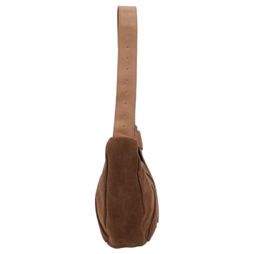 De Platamini schoudertas is gemaakt van hoogwaardig bruin suède en straalt direct luxe uit. De twee verticale lijnen aan de voor- en achterkant geven de tas een subtiel speels detail, terwijl het in het leer gedrukte merklogo duidelijk maakt dat dit een iconische creatie van Shabbies Amsterdam is. De zilverkleurige hardware maakt het geheel helemaal af en zorgt voor een stijlvolle, tijdloze look.