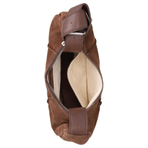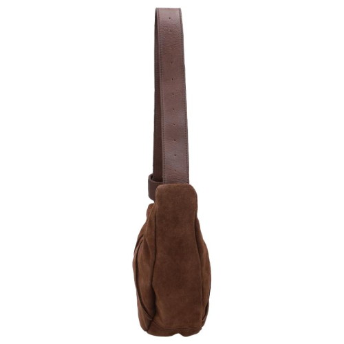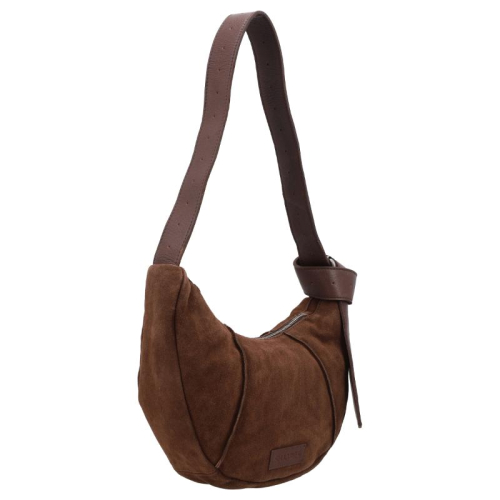De Platamini schoudertas is gemaakt van hoogwaardig bruin suède en straalt direct luxe uit. De twee verticale lijnen aan de voor- en achterkant geven de tas een subtiel speels detail, terwijl het in het leer gedrukte merklogo duidelijk maakt dat dit een iconische creatie van Shabbies Amsterdam is. De zilverkleurige hardware maakt het geheel helemaal af en zorgt voor een stijlvolle, tijdloze look.