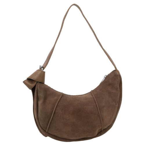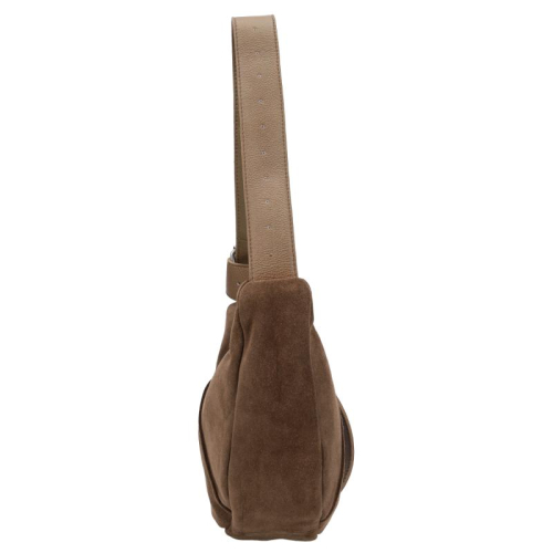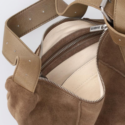De Platamini schoudertas is gemaakt van hoogwaardig taupe suède en straalt direct luxe uit. De twee verticale lijnen aan de voor- en achterkant geven de tas een subtiel speels detail, terwijl het in het leer gedrukte merklogo duidelijk maakt dat dit een iconische creatie van Shabbies Amsterdam is. De zilverkleurige hardware maakt het geheel helemaal af en zorgt voor een stijlvolle, tijdloze look.
