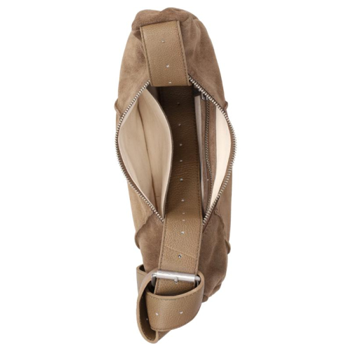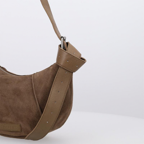 De Platamini crossbodytas van Shabbies Amsterdam straalt tijdloze klasse uit met zijn minimalistische design en hoogwaardige taupe suède. Subtiele details maken de tas stijlvol en verfijnd, terwijl het ruime interieur en de verstelbare schouderband zorgen voor optimaal draagcomfort.