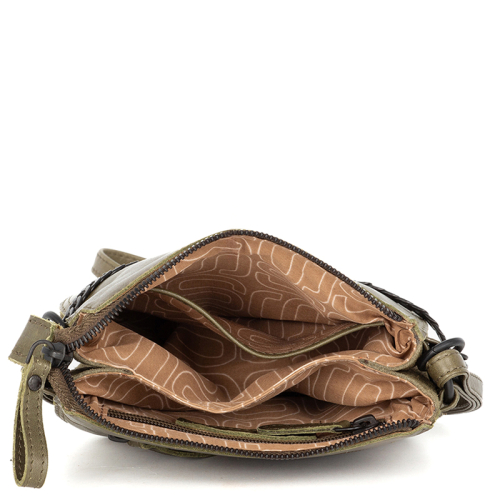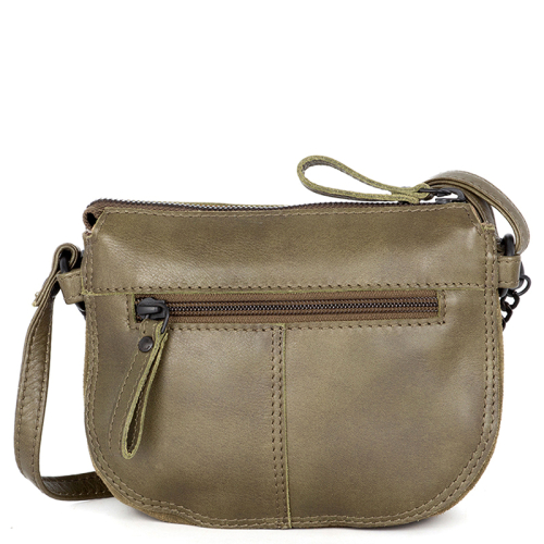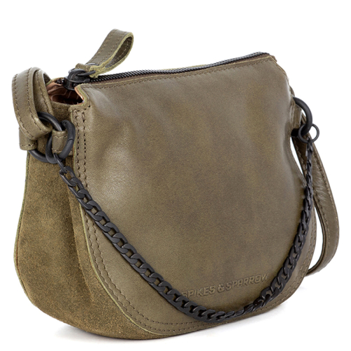 Wat een pittig klein te schattig groen crossbodytasje van Spikes & Sparrow uit de collectie Apache. Het merk, bekend om zijn stoere en stijlvolle lederen accessoires, komt helemaal tot zijn recht met dit juweeltje. Het leuke zwart metalen schakelkettinkje maakt het extra cute! De achterzijde heeft een handig ritsvakje en de zijkanten zijn van een matching suède. Spikes & Sparrow komt uit Nederland en heeft zich een stevige plek in de markt veroverd met hun vintage vibes en kwalitatieve designs.