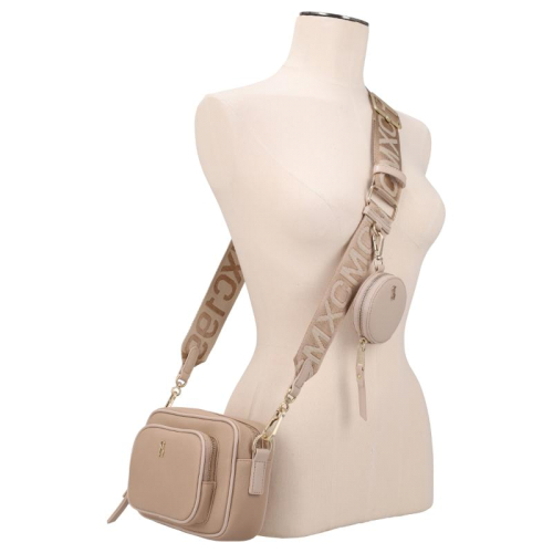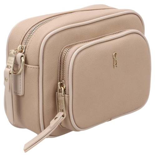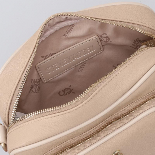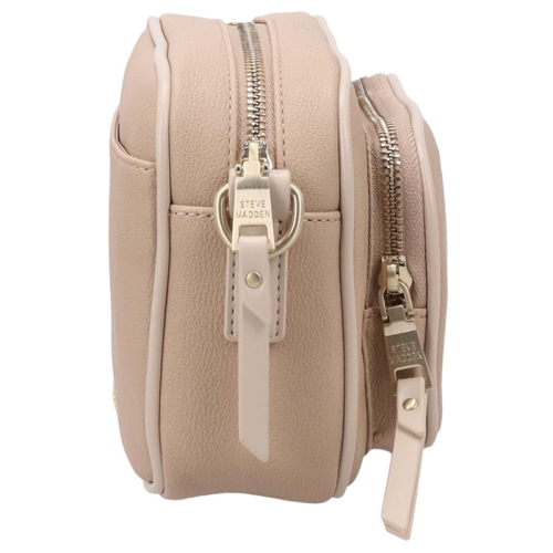 De Steve Madden Blillite is een stoere en moderne tas in beige, afgewerkt met bijpassende goude hardware voor een strakke uitstraling. Het brede schouderhengsel met witte “Steve Madden”-letters geeft de tas een sportieve edge, terwijl de ronde bag charm met rits aan het hengsel zorgt voor een speels en functioneel accent.