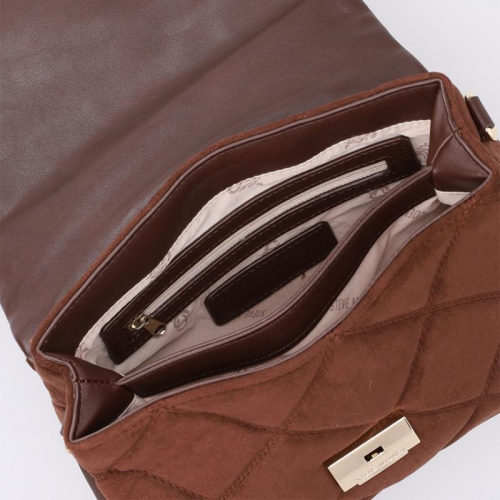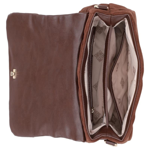 Deze Steve Madden handtas uit de Bmikki serie is een echte eyecatcher! Met zijn elegante imitatiesuède in bruin en het doorgestikte patroon, straalt hij klasse en stijl uit. Steve Madden, afkomstig uit New York, staat bekend om zijn trendy en modieuze ontwerpen die altijd op de laatste trends inspelen. De goudkleurige hardware, waaronder het embleem en de beschermnoppen, geven de tas een chique uitstraling. De gevlochten schakelketting als schouderband voegt een vleugje glamour toe, waardoor deze tas perfect is voor elke gelegenheid.