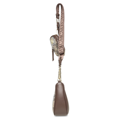 Ervaar het stijlvolle charisma van de Steve Madden Bvital12. Deze prachtige tas is uitgevoerd in een warme, bruine kleur die moeiteloos bij iedere outfit past. Het kunstleren materiaal omarmt een chique stoffen paneel met een elegant logopatroon in bruintinten, versierd met glanzende steentjes die de tas een luxueuze uitstraling geven. De goudkleurige hardware voegt een vleugje glamour toe. Afkomstig uit de wereld van Steve Madden, een merk dat bekend staat om zijn eigentijdse en trendsettende ontwerpen, is deze tas een echte must-have voor de modebewuste vrouw. Extra leuk: de tas komt met een bijpassende etui aan de schouderband!