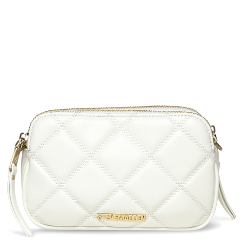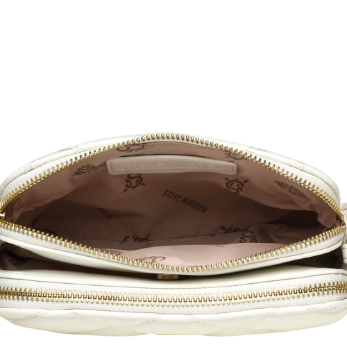 Wil je een crossbodytas die je streetstyle naar een hoger level tilt? Dan is deze Steve Madden Bmarvis tas echt iets voor jou! Deze witte tas is gemaakt van stoer doorgestikt imitatieleer met een gaaf wieberpatroon. Dat geeft 'm meteen een rock chick-vibe. Het grote goudkleurige Steve Madden-logo en de schakelketting maken het helemaal af. Dit rechthoekige tasje is echt een blikvanger waar je overal mee gezien wil worden.
